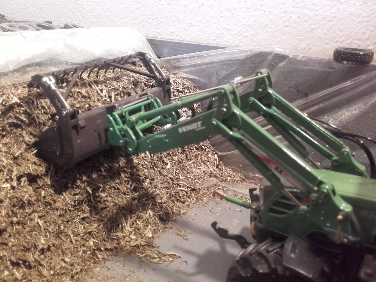 Der 313 Fendt wird schon mal startklar gemacht, Silogreifer angekuppelt und im Silo auf Opa warten