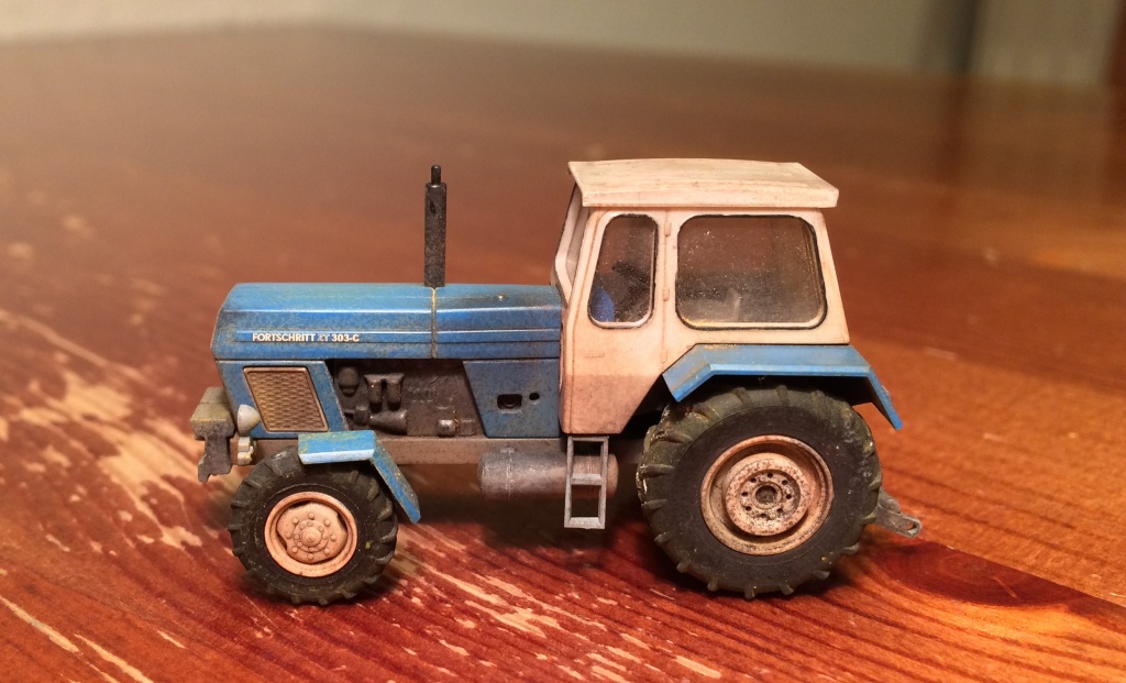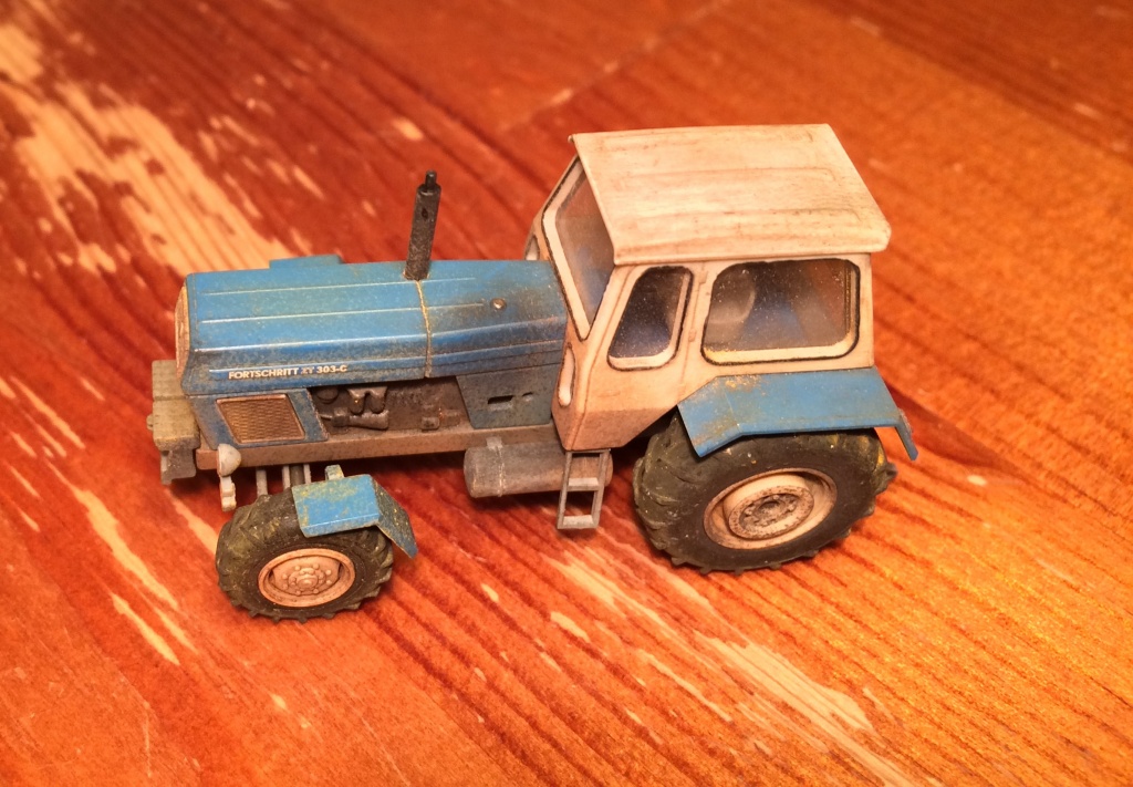 ...noch so dazu erzählt: Schutzblech vorne links ist bewußt verbogen; am Tank wollte ich es so aussehen lassen, wie es halt so aussieht wenn die Zapfpistole aber auch jedes mal leckt; ansonsten einfach nur Staub, Dreck, der Zahn der Zeit.