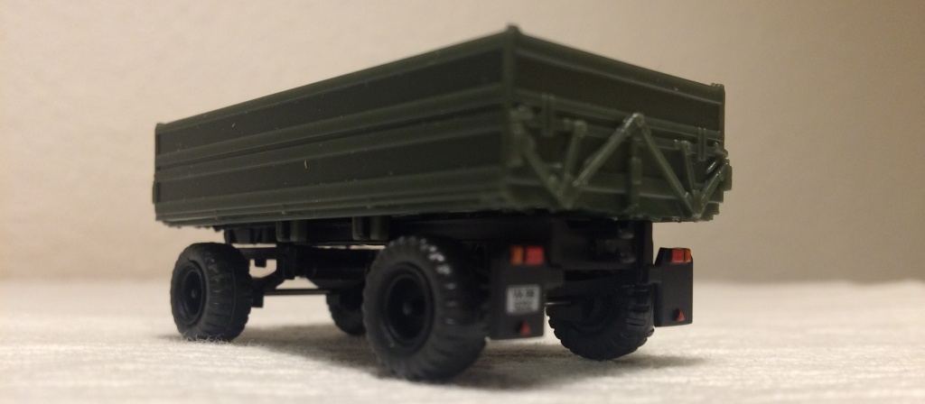 wiedermal sehr schön gearbeitet, lediglich eine Strebe vom hinteren Rahmen an den Überladearm fehlt. Gut, das sich nichts weiter bewegt muß ich nicht weiter ausführen. Im schönsten Fall, hätte man den Überladearm noch abknicken können für die Straßenfahrt. Apropos, die Zugdeichsel läßt sich für den Straßen- und Arbeitsbetrieb verstellen...