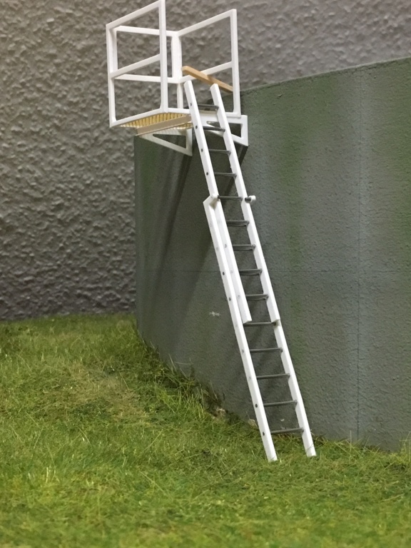 Wie auf den Bildern zu erkennen bin ich gerade dabei das Podest zu bauen, mit passender Anlegeleiter. Das Rohr mit dem passenden Anschlussstück und Absperrschieber ist soweit im Rohbau fertig.