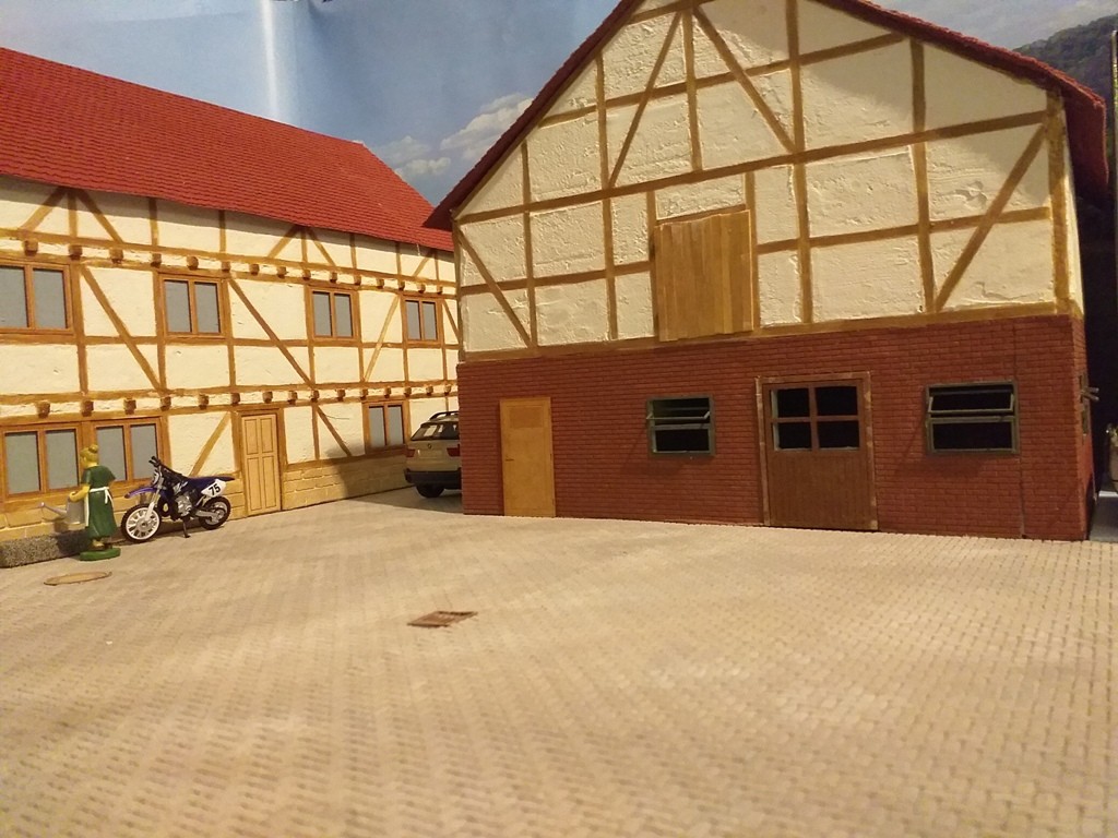 Ein schöner Fachwerkhof , da bin ich mal auf die weiteren Fortschritte gespannt. Wieviel Platz hast du für die gesamte Hoffläche zur verfügung?