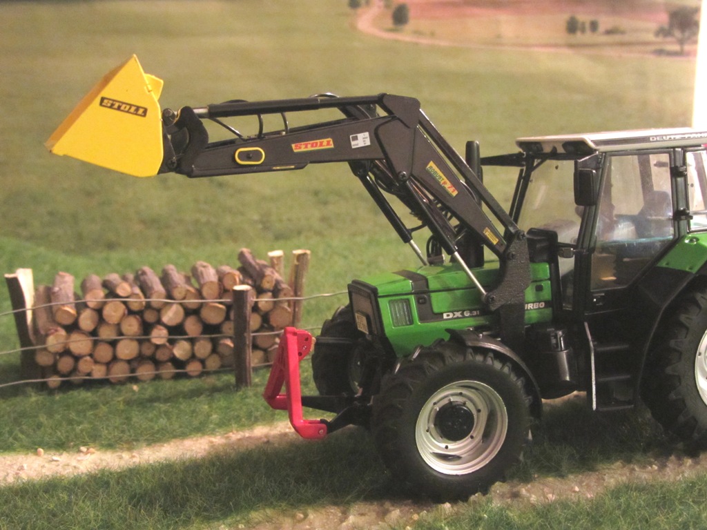 ist recht schwer. Mein RC-Fendt 939 schiebt damit bei Kurven ganz schön über die Vorderachse, trotz Frontgewicht.