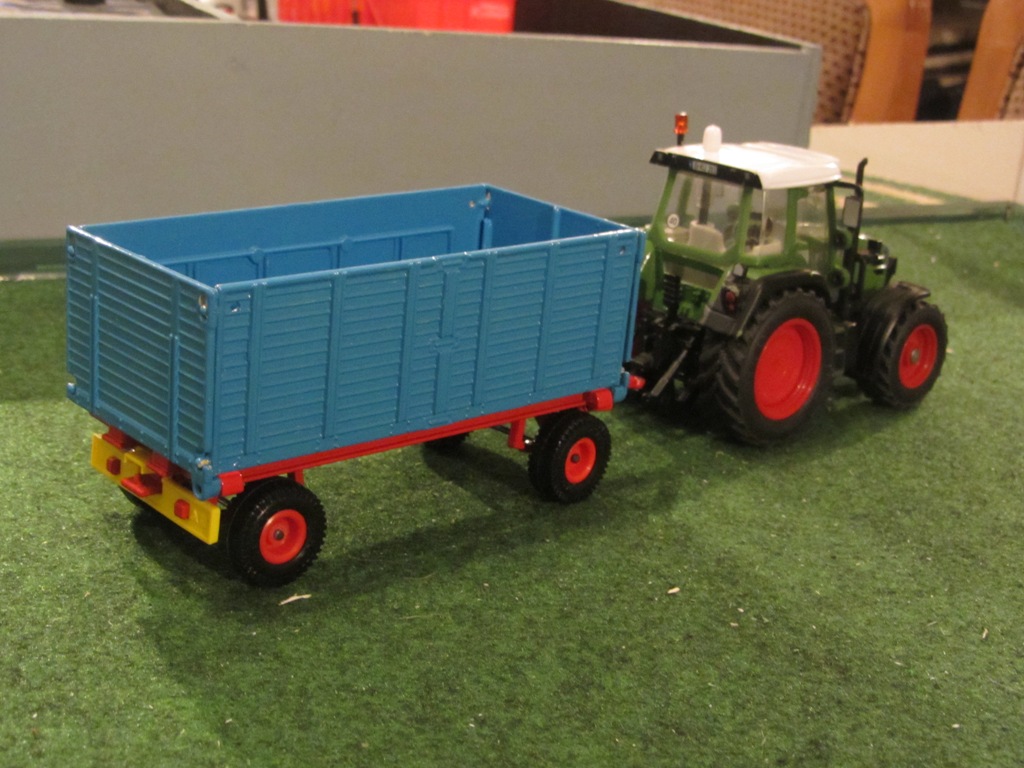 Um das erwähnte Mini-Maisdio mit Modellen aus meinen Jugendtagen zu komplettieren, fehlte mir ein Mengele Kipper mit 8t. Um auf die Schnelle einen solchen anzudeuten, habe ich einen SIKU 2859 Rübenanhänger in das Original Mengele Blau umlackiert.