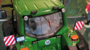 Weiterhin habe ich den Fahrerstand als RüFa umgebaut, wo der Fahrer Platz nehmen konnte (ja, Jonas, ist bislang nur der stinknormale Siku-Fahrer ;)). Außerdem gab’s auf den Türen noch das Logo vom Maschinenring:
