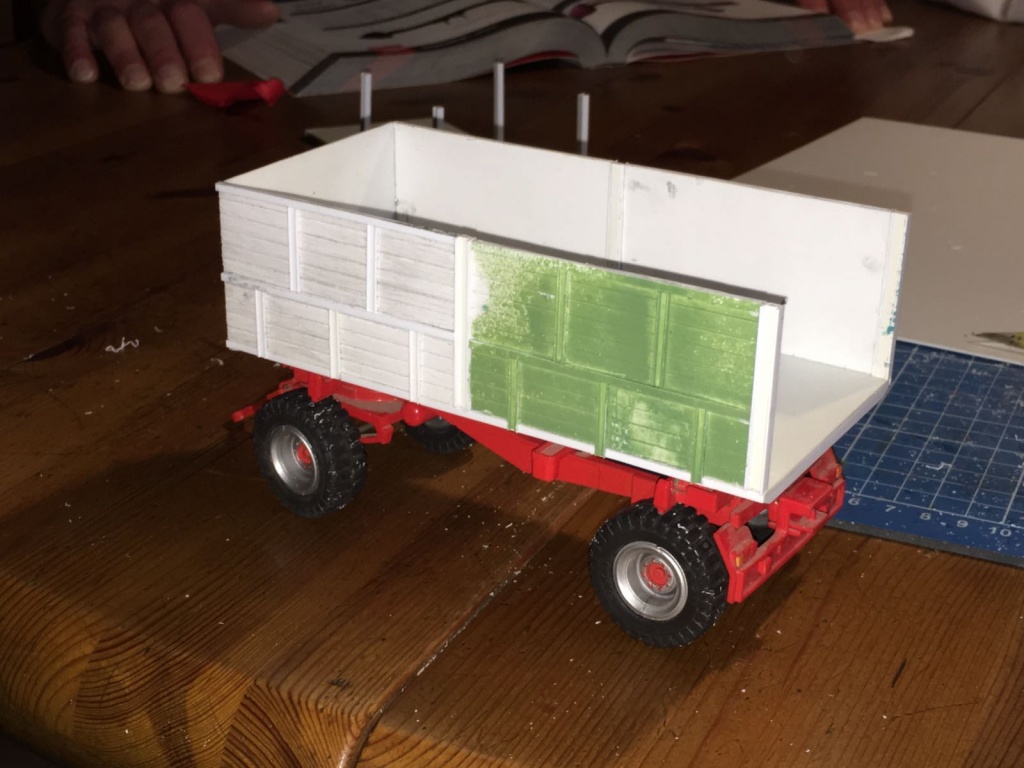Immernoch geplättet von Harburg und mit dem alten Wunsch eines Zuges alter 16-Tonnen Kipper mit Holzbordwänden hat mich die Lust gestern gepackt! Schleunigst mal das ganze Material und Werkzeug aus der Ecke gekramt und begonnen zu bauen. Maße und Optik habe ich von einem Kässbohrer Zweiseitenkipper abgenommen, allerdings wurde der nicht bis ins kleinste Detail umgesetzt, Hauptsache war und ist, dass das ganze stimmig aussieht. Danke auch noch an Volker (ih633), der mir mit Bildmaterial seines Eigenbaus sehr weiter geholfen hat! Das Fahrgestell ist aktuell vom siku Welger, entweder wird es einem Extremumbau zum Opfer fallen oder aber ich habe etwas Glück und komme an zwei Fahrgestelle vom UH Brantner.