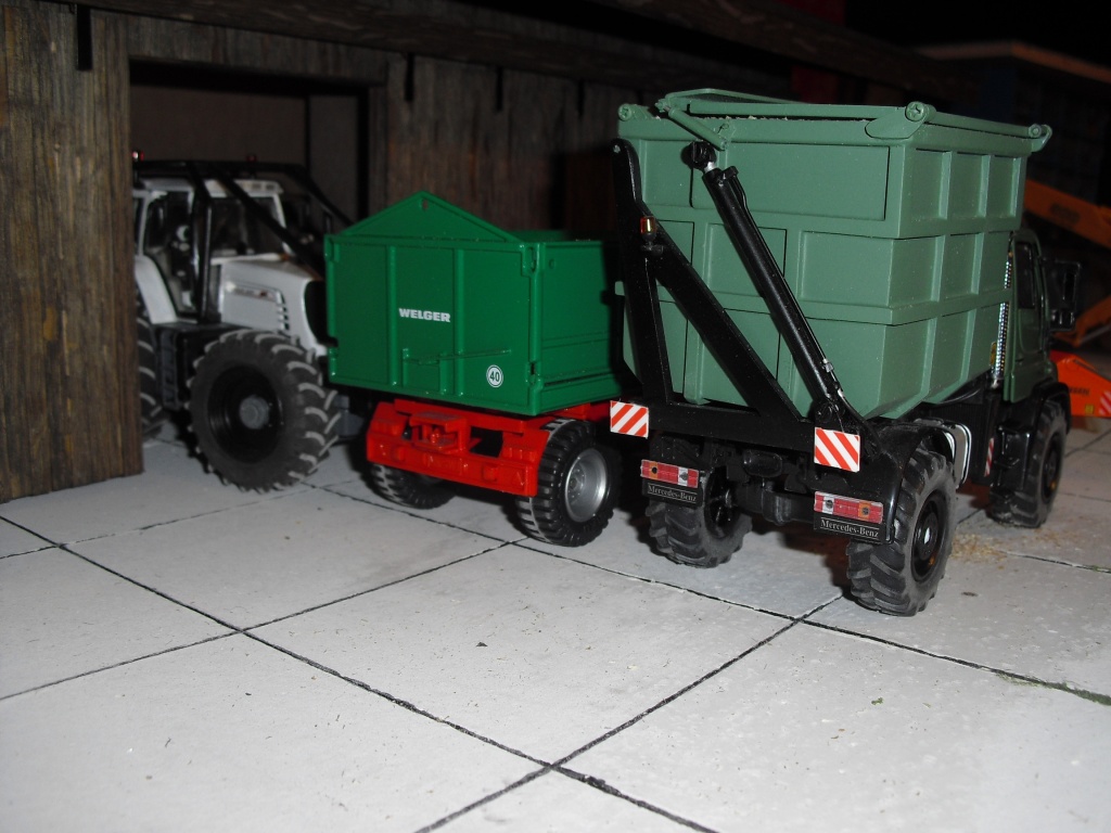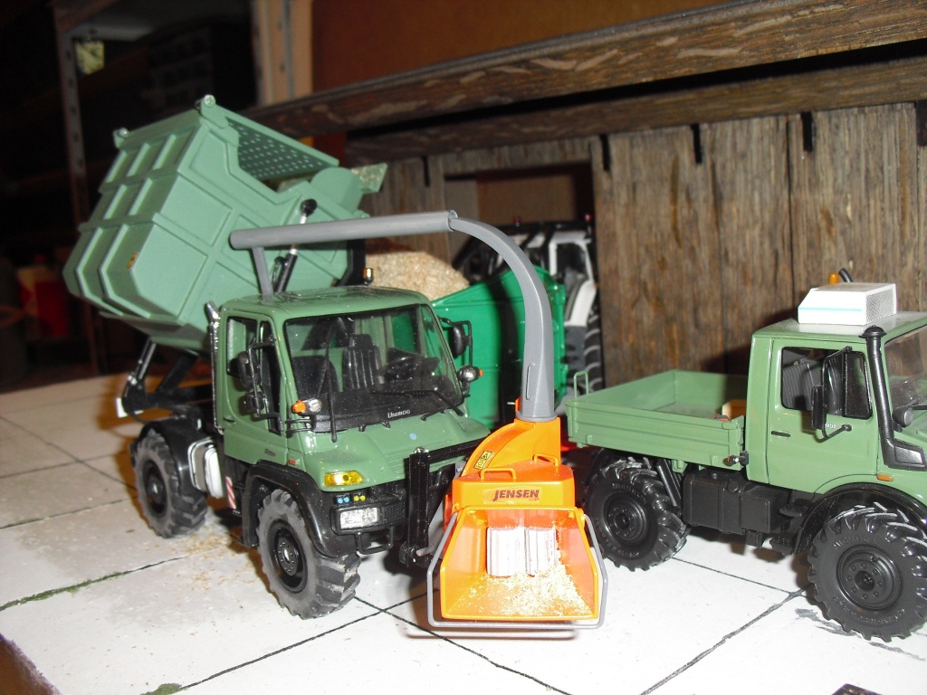 Ich habe für denn U400 einen Holzhäcksler und einen Hochkippbunker gebaut, hier mal ein paar Bilder von dem Unimog.