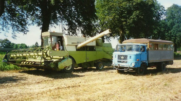 Michi, genau sowas hat noch gefehlt! Sehr schöne Bilder - ich hab mich gefreut! Das W50 Gespann - sowas kommt nicht wieder!!! Wenn ich dran denke, wie oft ich da im Sommer mit in der Kabine saß - vom Feld zum Speicher und zurück - Stunden lang....