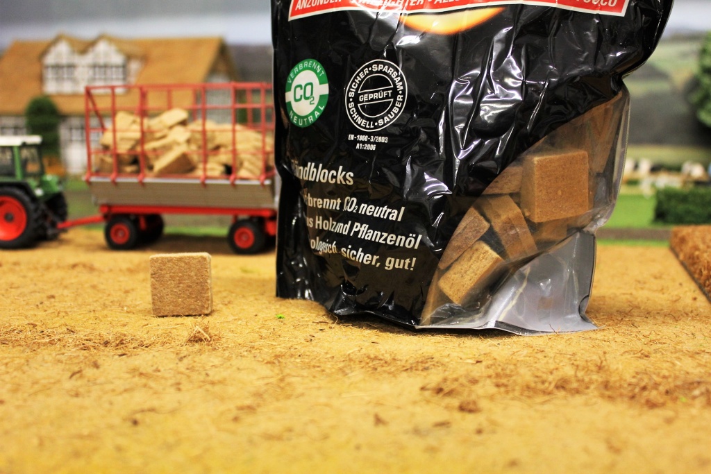 Ich nehme dafür diese Zündblocks, die sind aus Holzfasern und Pflanzenöl gepresst.
