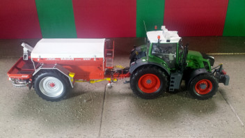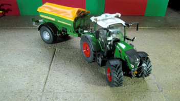 - Bereifung am Fendt, Kennzeichen, richten der Rundumleuchten und Spielgel, ich habe das Frontgewicht komplett weggelassen (passte nicht zu dem Gespann) und habe auf den Fendt 718 Vario einen Yara N-Sensor ALS zur Ausbringung von N-Düngern in fester und flüssiger Form gebaut.
