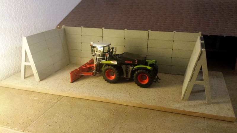 Heute habe ich mal ein kleines Mini-Diorama für euch bestehend aus einem DDR Fahrsilo von Miniaturbeton, sowie einem K700 A mit TA81-4m Silozange von TKCustoms und einem Claas Xerion 4000 ST mit Holaras Schild und Heckgewicht von Miniaturbeton.
