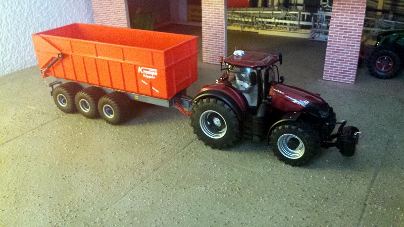 Heute mal ein zweites Rotes Gespann, bestehend aus dem Case Optum 300 im "Pearl Red" von MarGe Models mit einem Siku Krampe TW 800 den ich mal so umgebaut habe. Von den Krampe Kippern habe ich mir mal 2 Stück so umgebaut. Anbei mal der Vergleich von normalen Optum zum "Pearl Red". Es handelt sich bei mir um die Nummer 121/500
