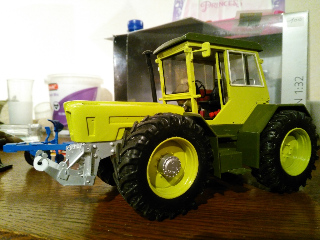 Ich habe noch immer Teile einiger Weise-Toys-Supertracs (ohne Hauben, zersägt, usw) hier liegen... die zu schade sind, sie nicht doch noch irgendwie zu verwenden. Gerade die späten Versionen mit den langen Kotflügeln fehlen mir noch. Hier hat sich Schlüter gegen Ende der Bauzeit stilistisch näher an den MB-Trac angenähert, ein Umstand der ja auch für den Eurotrac beibehalten wurde. Optisch finde ich diese Schlepper sehr gelungen, warum sich also nicht einmal an sowas versuchen? In diesem Zusammenhang wollte ich unbedingt auch eine Fronthydraulik installieren. Hierzu hatte ich mich schon vor einiger Zeit in einem Schlüterforum nach Maßen erkundigt, leider ohne ein befriedigendes Ergebnis... Daher habe ich mich letztlich mit Hilfe vieler Photos an die Proportionen "herangeschätzt".
