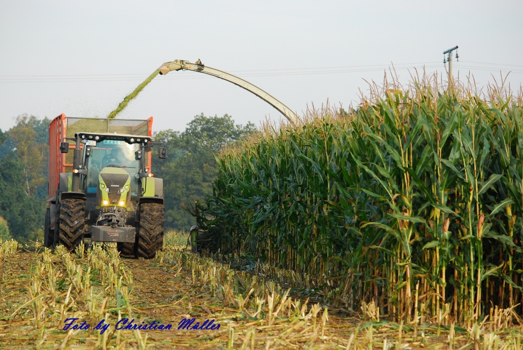 ...und nachdem er dann genug vom Häckslerfahren hatte und der Knipse sinn ma los nach Hause....da stand dann das Rotwild im Feld....im Rudel...Sohni hatte aber patuu kein Bock mehr