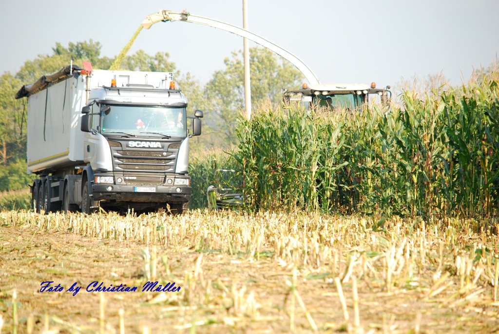 ...und nachdem er dann genug vom Häckslerfahren hatte und der Knipse sinn ma los nach Hause....da stand dann das Rotwild im Feld....im Rudel...Sohni hatte aber patuu kein Bock mehr