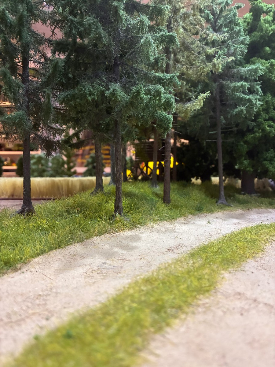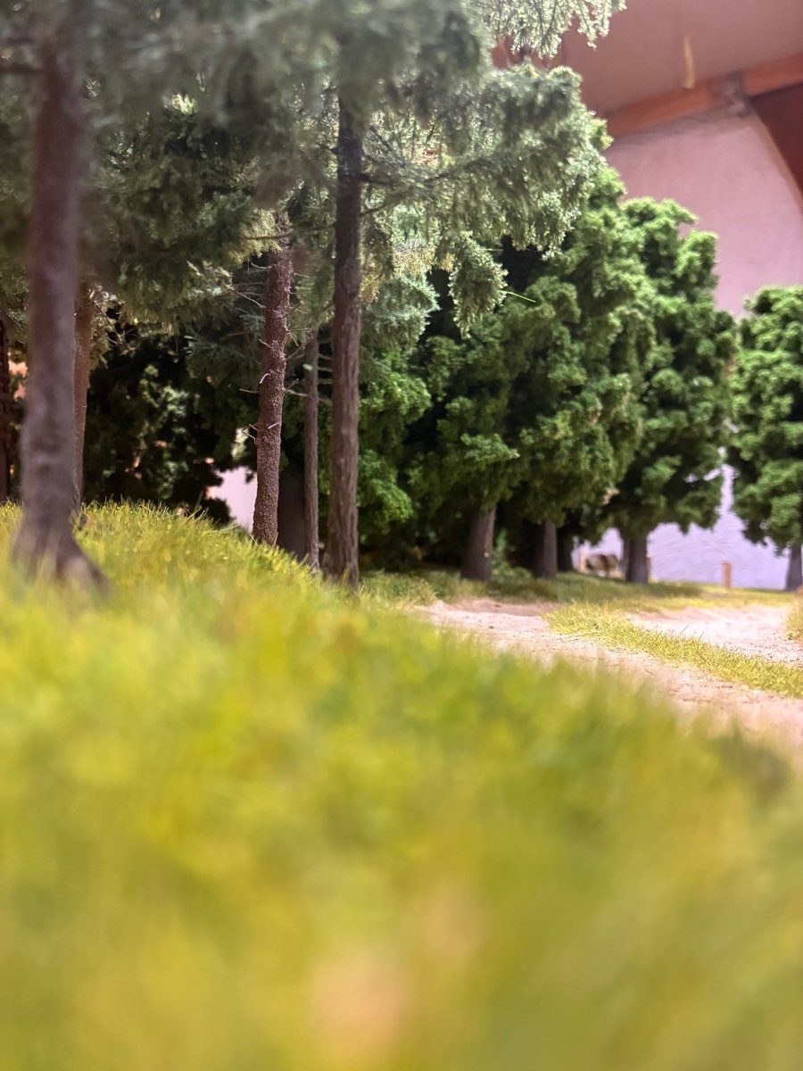 Die Bäume stehen jetzt fest an ihrem Platz. Als nächster Schritt kommen weitere Bäume. Sobald diese da sind, wird das Unterholz bearbeitet. Der Weg muss auch nochmal überarbeitet werden. Damit bin ich noch nicht so zufrieden.