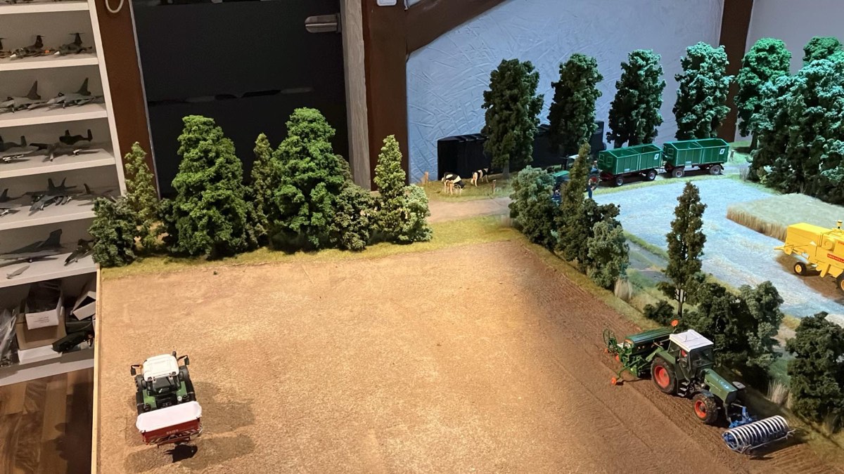 Die beiden Bäume auf der Weide bekommen noch ihren Fuß, der Zaun wird gezogen und dann die Details.