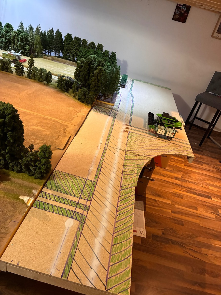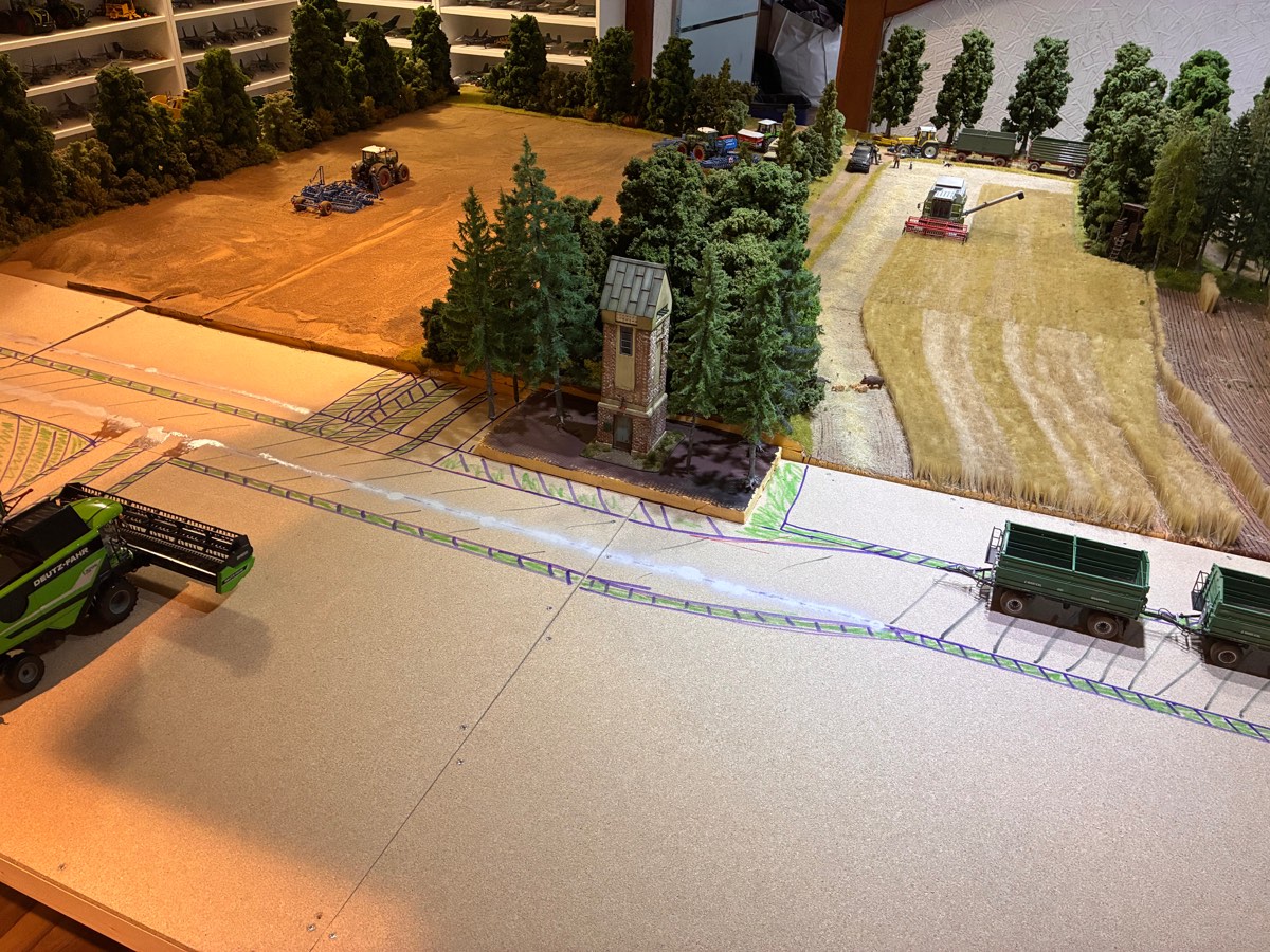 Dort wird ein Asphaltweg mit Grundfläche und Stoppelfeld dargestellt. So kann ich entweder Pressen darstellen oder einen Mähdrescher beim Abbunkern. ☺️