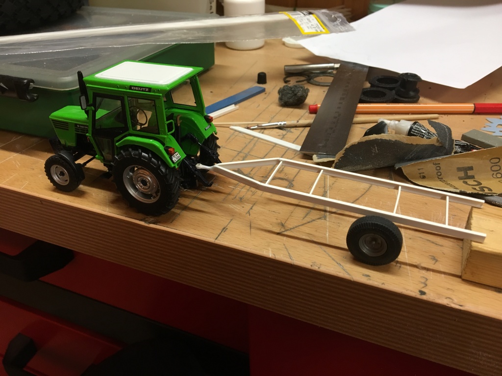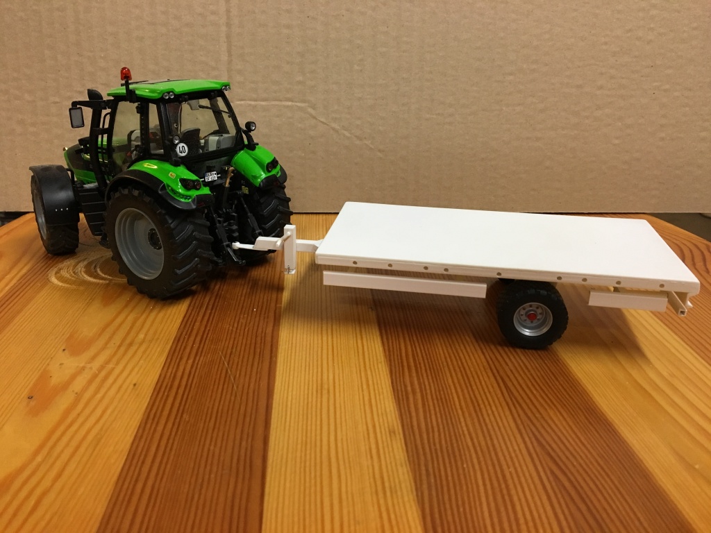 Heute ging es wieder weiter mit einem schnellen Eigenbau, einem Plattformanhänger. Grobe Maße hab ich von Joskin übernommen (Reifen, Breite, Deichsel...), der Rest ist aus meiner eigenen Fantasie entstanden, bzw. eigentlich hatte ich noch die Räder rumliegen und wollte einen Hänger daraus machen :D. Gedacht ist der Hänger für den RC Betrieb, um Ladegut von A nach B zu bringen. Bin gespannt auf eure Reaktionen ;). Ein bisschen Farbe bekommt er natürlich auch noch, dazu gibt es dann wann anders Bilder.