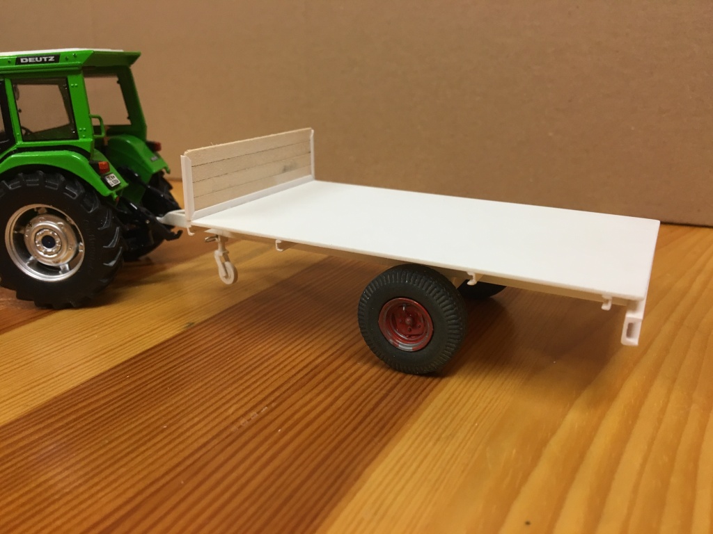 Heute ging es wieder weiter mit einem schnellen Eigenbau, einem Plattformanhänger. Grobe Maße hab ich von Joskin übernommen (Reifen, Breite, Deichsel...), der Rest ist aus meiner eigenen Fantasie entstanden, bzw. eigentlich hatte ich noch die Räder rumliegen und wollte einen Hänger daraus machen :D. Gedacht ist der Hänger für den RC Betrieb, um Ladegut von A nach B zu bringen. Bin gespannt auf eure Reaktionen ;). Ein bisschen Farbe bekommt er natürlich auch noch, dazu gibt es dann wann anders Bilder.