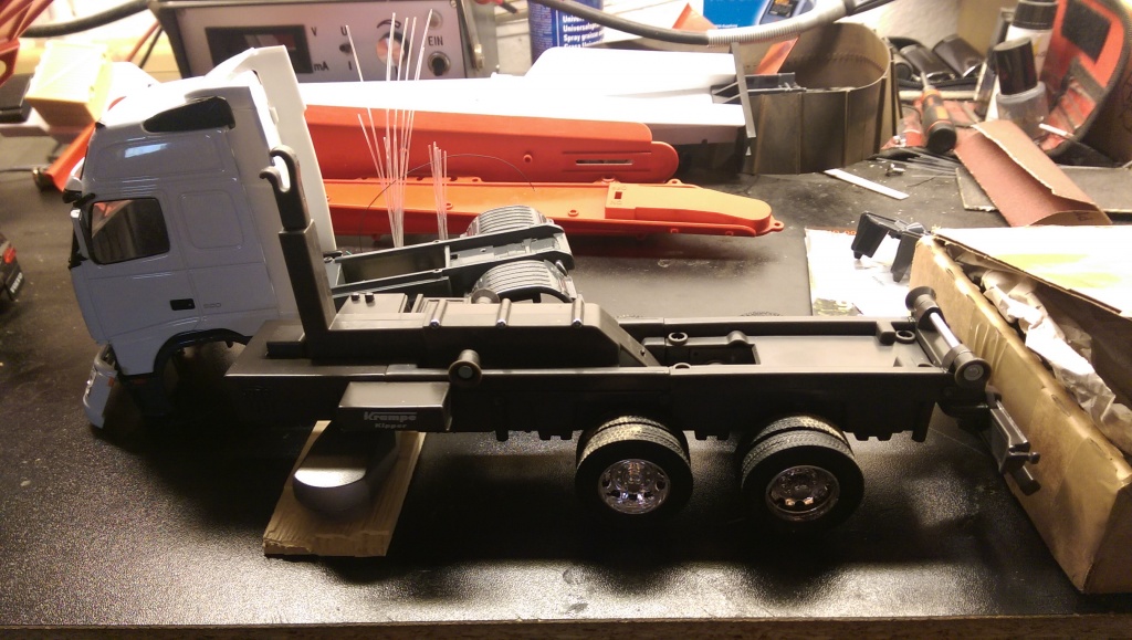 Es hält sogar sehr gut. Hier mal das Ganze mit dem schnell aufgesetztem Führerhaus und Container.