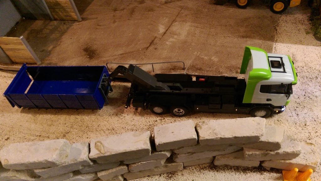 Es hält sogar sehr gut. Hier mal das Ganze mit dem schnell aufgesetztem Führerhaus und Container.