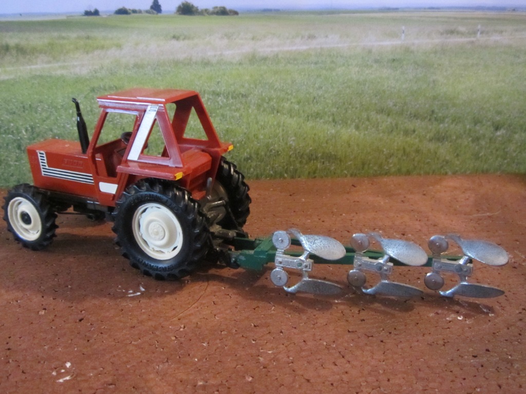 Auf dem Acker der Fiat mit dem 3-Schar Volldrehpflug (bei Britains):