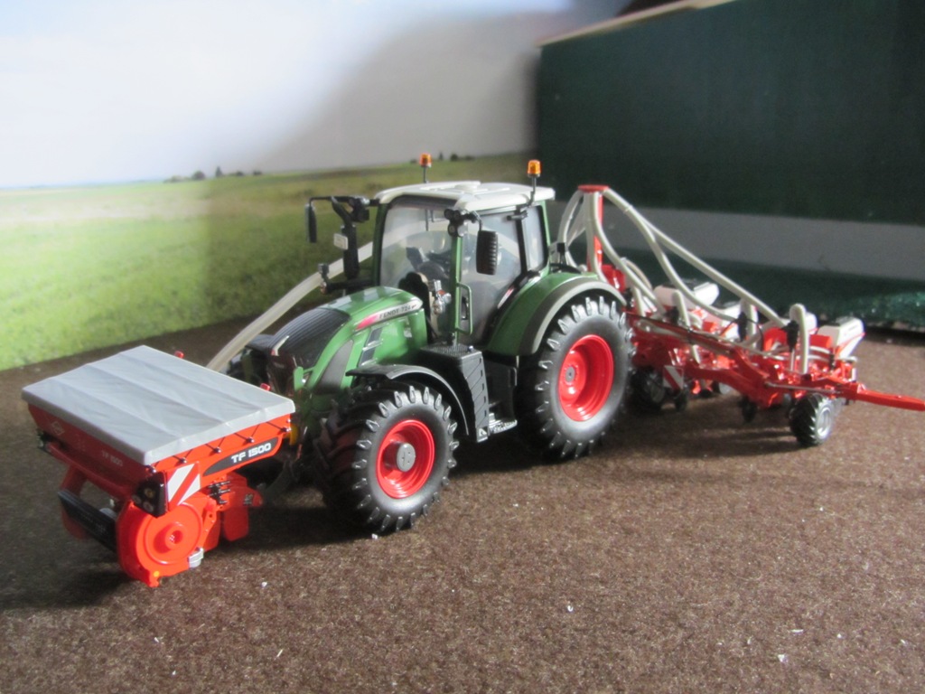 Der IHC 624 von Replicagri, hier mit dem Siku Classic Amazone Düngerstreuer: