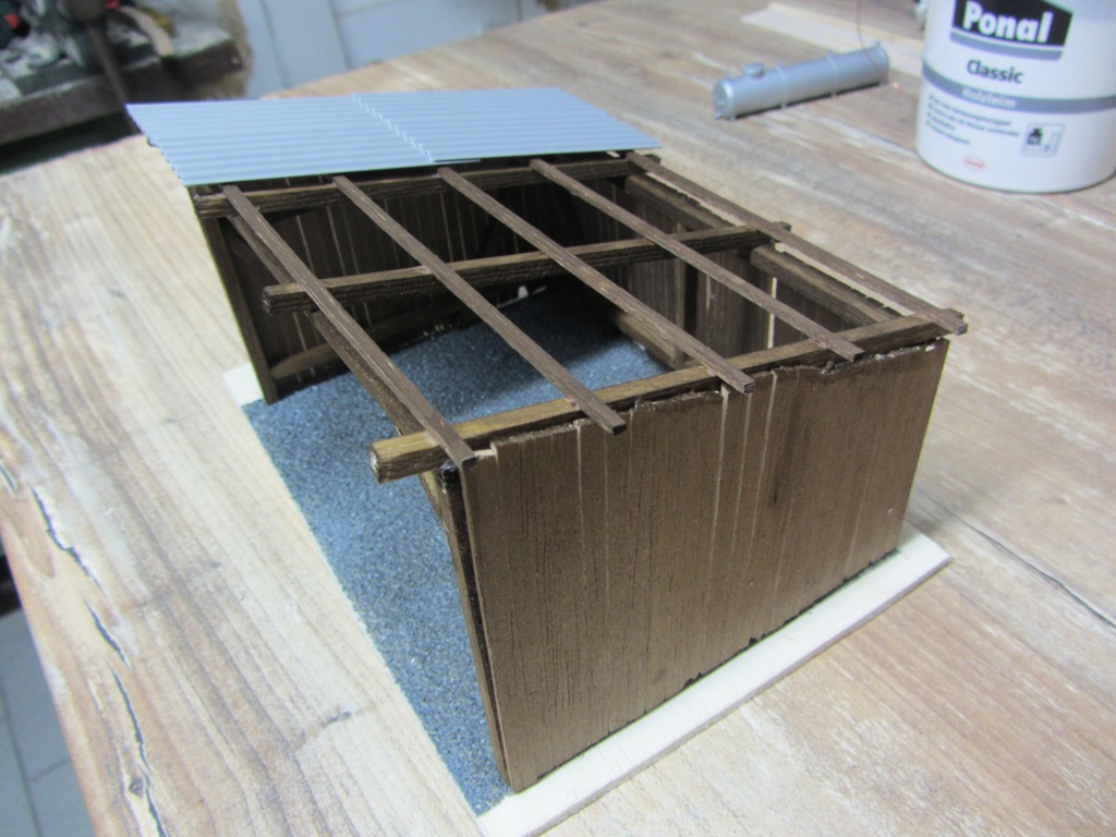 Ein richtiges Dach kommt natürlich auch noch drauf. Aber eines nach dem anderen; Schritt für Schritt…Sicherlich noch viel Luft nach oben, aber mit meinem nicht gerade guten Geschick bin ich doch schon recht zufrieden damit; immerhin eine - wie ich finde - wesentliche Verbesserung gegenüber meinen Anfängen.