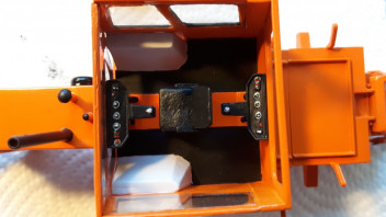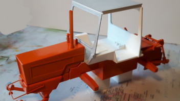 der Kramer ist fast fertig. Nur noch Aufkleber, Reifen, Lenkrad und ein neues Dach montieren. Das Dach bleibt abnehmbar, um den Sitz drehen und das Lenkrad umstecken zu können. Ansonsten ist vorn der Oberlenker beweglich, während man hinten einen Replicagri Oberlenker einhängen und bewegen kann. Der Rest ist starr.