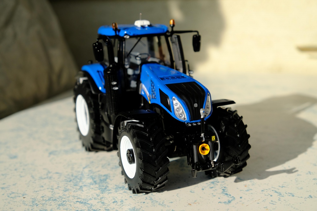 Ich habe eben den New Holland T8.435 Blue Power ausgepackt, welchen ich heute erhalten habe.Bin von dem Modell eigentlich enttäuscht.Gut,er ist schwer aber in meinen Augen war es das dann auch.Bei meinem fehlt der Aufdruck Autocommand auf der linken Haubenseite und die Unterlenker hinten sind krumm und schief.Die Detailierung von aussen ist gut(Warnaufkleber etc.)Aber auf der haube sind die ganzen Lufteinlässe nur auflackiert,das hat Wiking zb. beim 939 viel besser gelöst(und der kostet nur die Hälfte)Scheinwerfer hin oder her.Habe nebenbei auch noch den Weise Deutz 6185TTV ausgepackt,bei dem die Vorderachse schlackert als hätte er 12000h auf der Uhr.Meiner Meinung nach lässt die Qualität der Modelle immer mehr nach,da lob ich mir die Modelle von Wiking,da hatte ich noch nie eine beanstandung.gruss