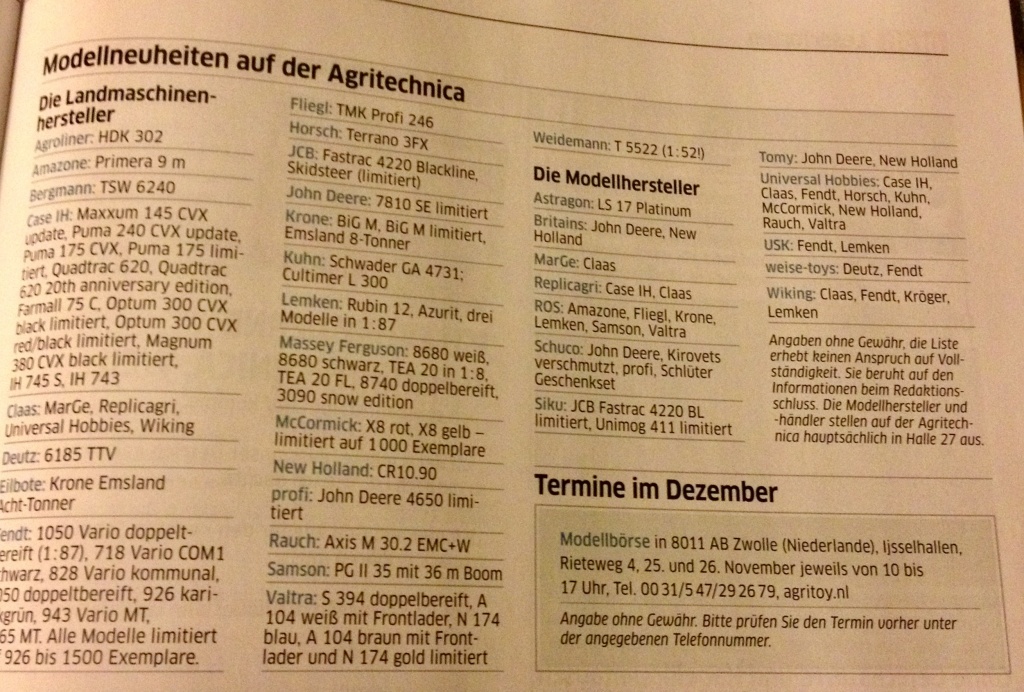 List of all the new 1/32 items so far for this years Agritechnica!