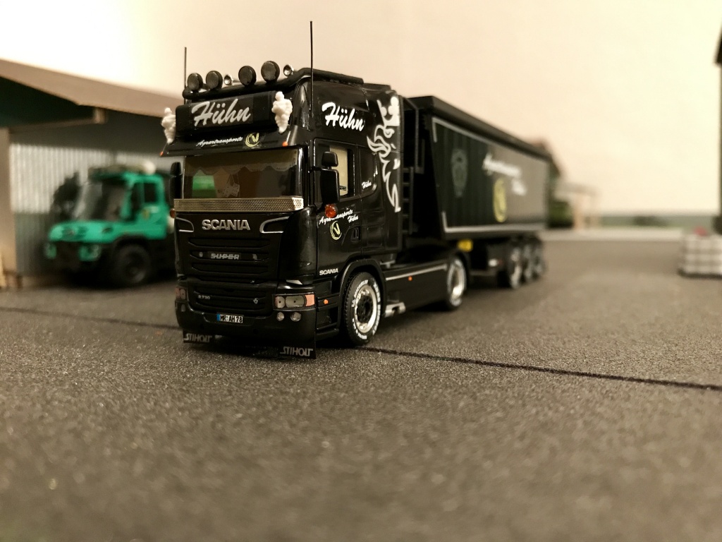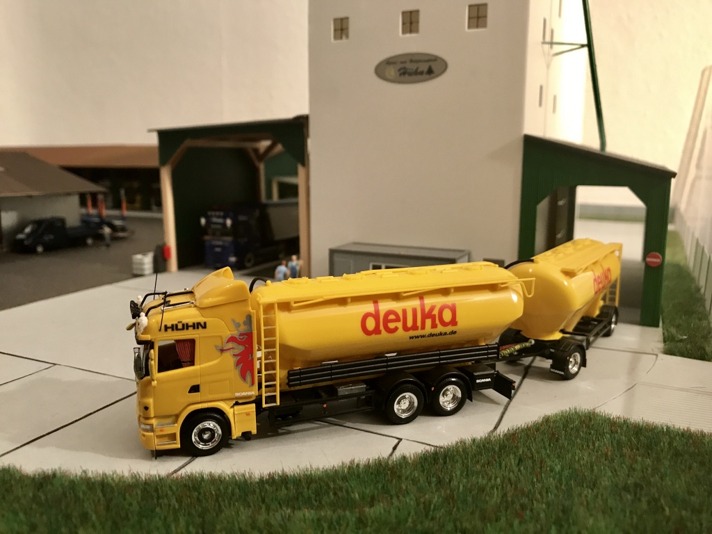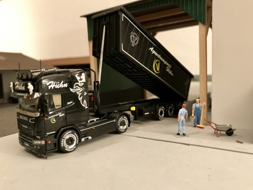 Zum "Agro-Scania" ist zu sagen : Das Fahrgestell ist ein Allrad Fahrgestell von Herpa . Habe es aber gekürzt, so das es besser wirkt . Die Reifen sind vom Kibri Claas Jaguar. Habe sie auf Herpa Doppelachsfelge aufgezogen. Die passen super da drauf .