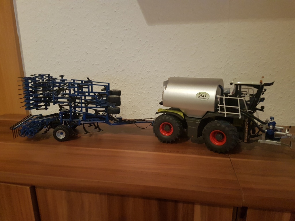 Wow, sehr schön! Das gesamte Gespann ist der Hit in meinen Augen und dann mal mit einem Schleppschlauchverteiler! Wie hast du den Schleppschlauchverteiler gebaut, also den Rahmen? Würde mich sehr interssieren!
