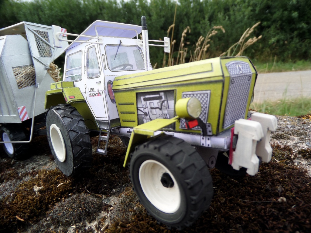 DDR ZT 303 Allrad Zugtraktor 1:32 in Sienagrün und Hächselanhänger
