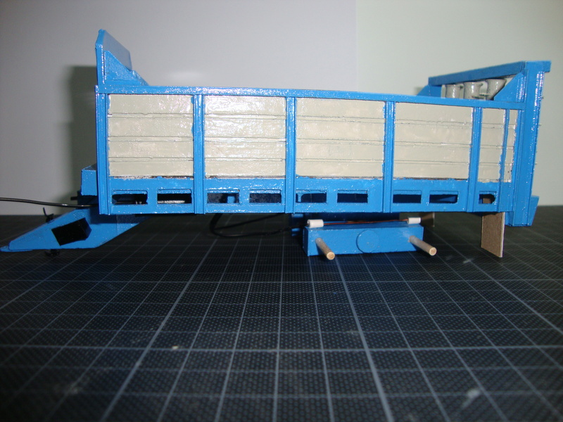 Der Hänger ist noch nicht ganz fertig. Da er für einen guten Modellbaufreund gedacht ist wird die Komplettierung mit Rädern, Rücklichtern und einem Rest Farbe in Eigenleistung meines Modellbaufreundes entstehen.