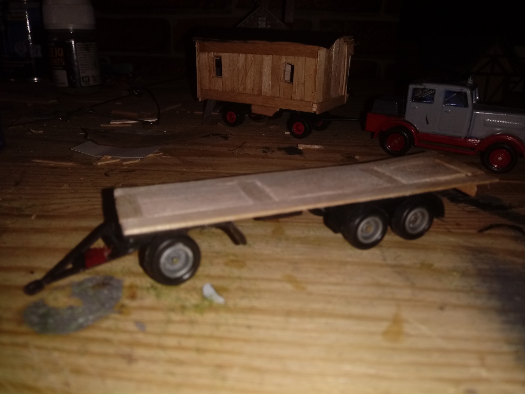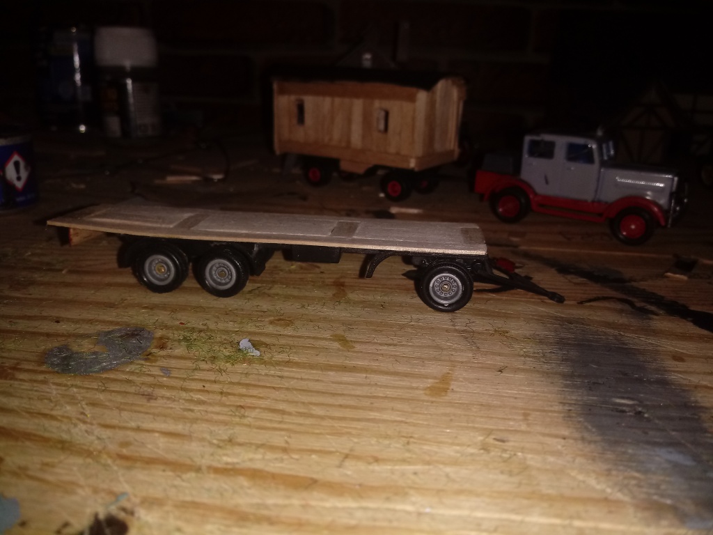 Der Tieflader ist noch nicht ganz fertig , er entstand auf einer ähnlichen Basic wie der Bauwagen .
