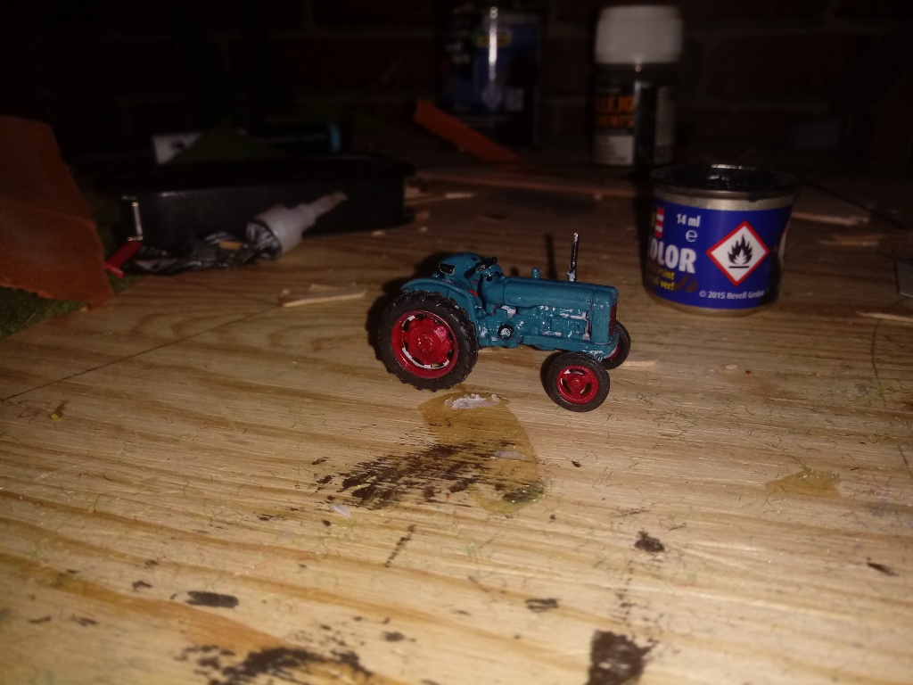 Der Fordson könnte von Oxford DieCast sein. Deren Modelle sind aber leider in 1:76 oder 00. Die auf der Insel fahren nicht nur auf der falschen Straßenseite, die haben auch die Modellbahnmaßstäbe "falsch" übersetzt.;) Bei einem Schlepper wie dem Fordson Major bedeutet das einen Unterschied im Radstand von ca. 4mm. Das wäre in echt über 30cm. Wenn keine Vergleichsschlepper daneben stehen, merkt das aber kein Mensch. Als echtes H0 Modell müsste der Fordson Major übrigens einen Radstand von 23,3mm haben.