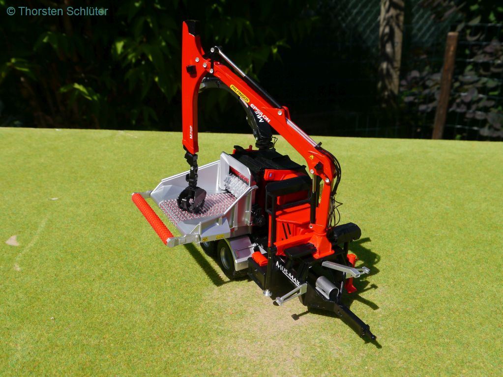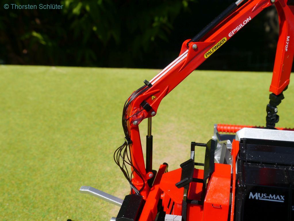 Der Palfinger Epsilon M70F lässt sich ausklappen, drehen und in einer Stufe (original sind zwei) teleskopieren (hab ich natürlich kein Bild von gemacht )