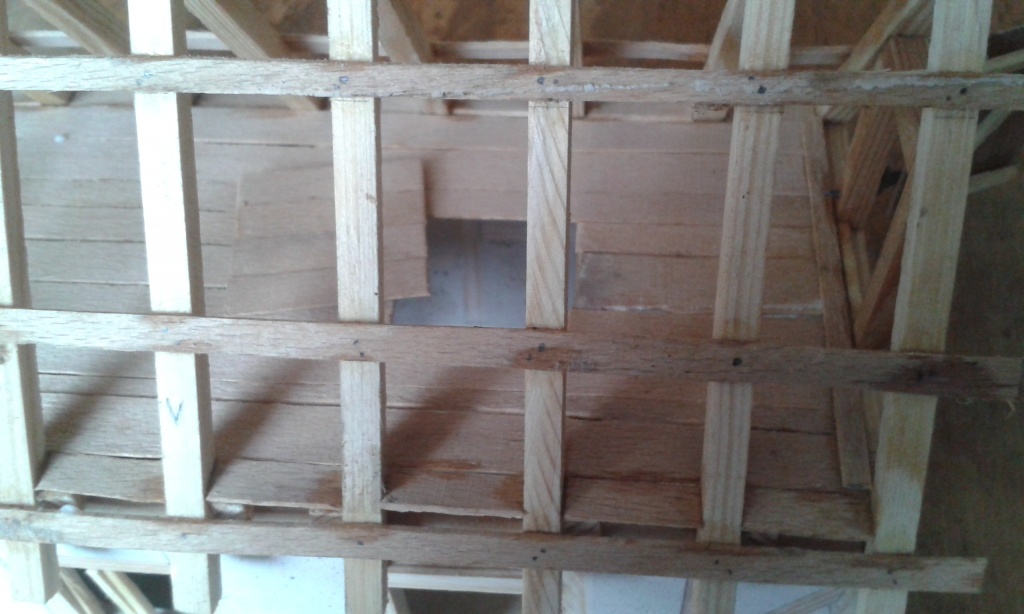 Die Bleche habe ich dann aufgeklebt und noch Abschlüsse am First und den Seiten hergestellt. Danach habe ich die Balken angestrichen, Fester und die Tür gebaut und dann gings an den Innenausbau:)