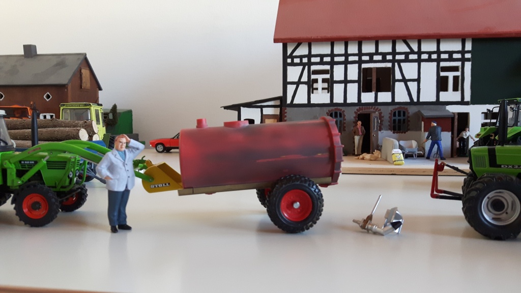 Das Fass ist dir richtig gut gelungen, genau mein Ding! Nur den Schlauch würde ich noch mal überarbeiten! Ich würde den Stutzen, wo er aufgesteckt ist, dünner machen, damit der Schlauch nicht so geweitet wird und ich würde ihn dann noch weiter drauf schieben! Eine Hydraulikleitung für den Schieber und ein Kabel für die Beleuchtung würde ich noch an die Deichsel machen.;-)