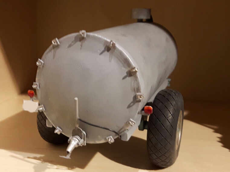 das Endergebnis finde ich - v. a. wegen der Details - recht schön, wobei für mich der Baubeginn durchaus vielversprechender aussah. Ich finde, du hast mit dem Fasskörper sowie den Verriegelungen am Heck richtig klasse begonnen und ebenfalls tolle Reifen ausgewählt. Dazu passen die deutlich sichtbaren Bruchstellen an den Biegungen der Deichsel oder auch der etwas lieblos aufgesteckte Schlauch m. E. einfach nicht.