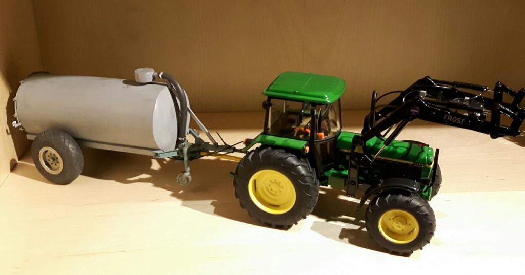 Das Fass ist dir richtig gut gelungen, genau mein Ding! Nur den Schlauch würde ich noch mal überarbeiten! Ich würde den Stutzen, wo er aufgesteckt ist, dünner machen, damit der Schlauch nicht so geweitet wird und ich würde ihn dann noch weiter drauf schieben! Eine Hydraulikleitung für den Schieber und ein Kabel für die Beleuchtung würde ich noch an die Deichsel machen.;-)