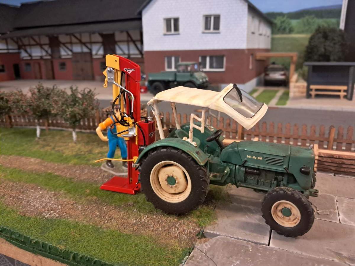 Jupp hat sich heute vorgenommen, Dünger zu streuen. Den Dünger hatte er schon neulich gekauft und ihn samt Anhänger, auf dem er ihn geholt hatte, schon mal im Unterstand an der Wiese abgestellt.