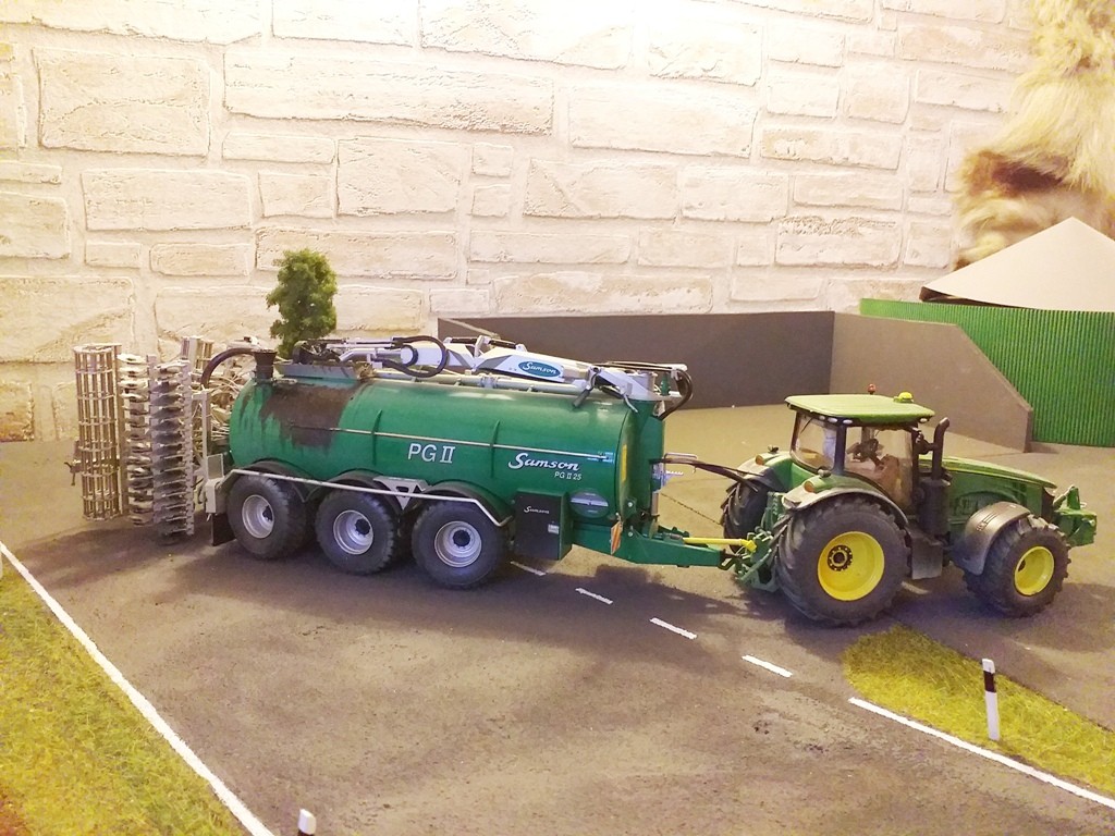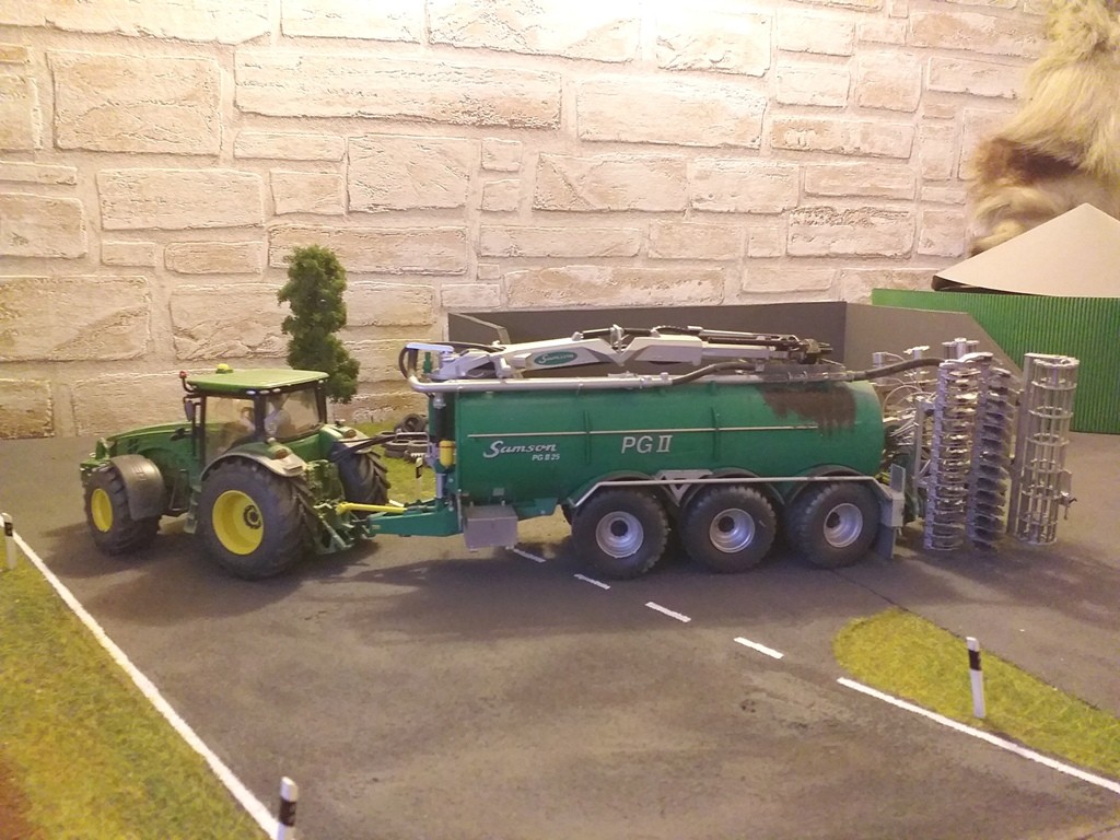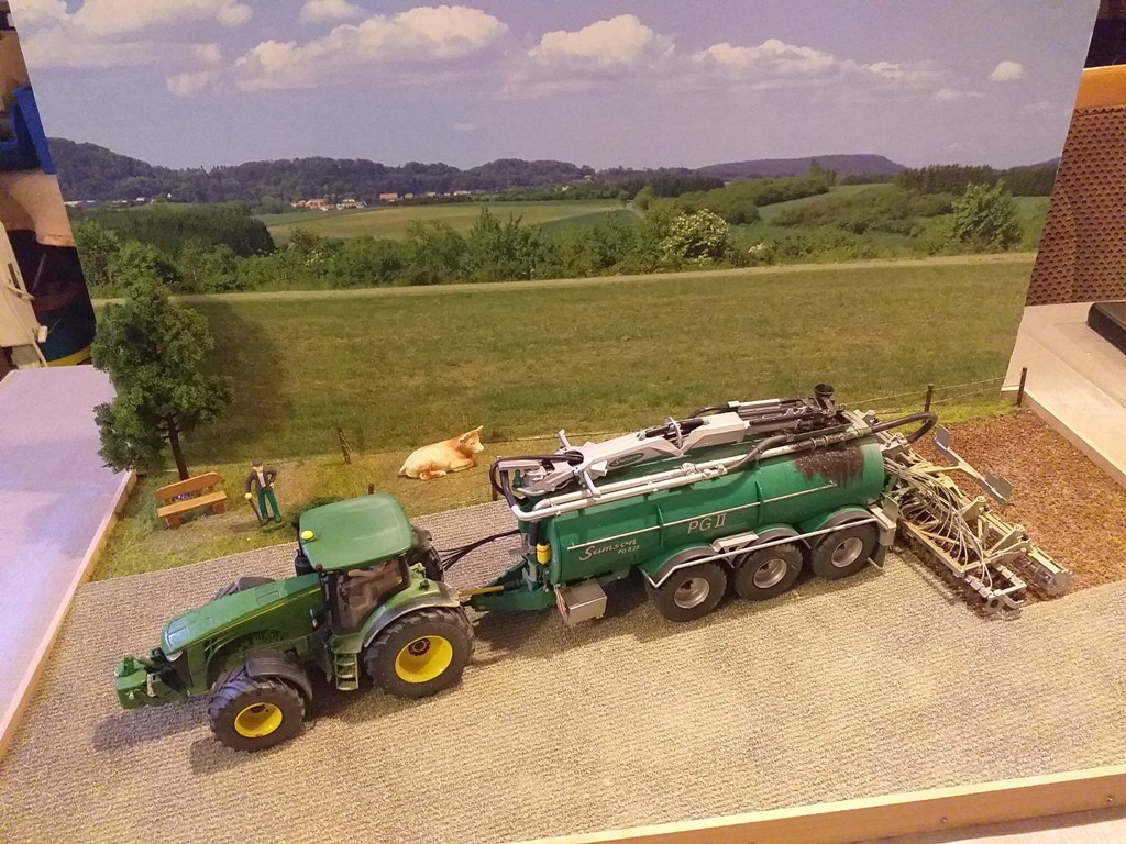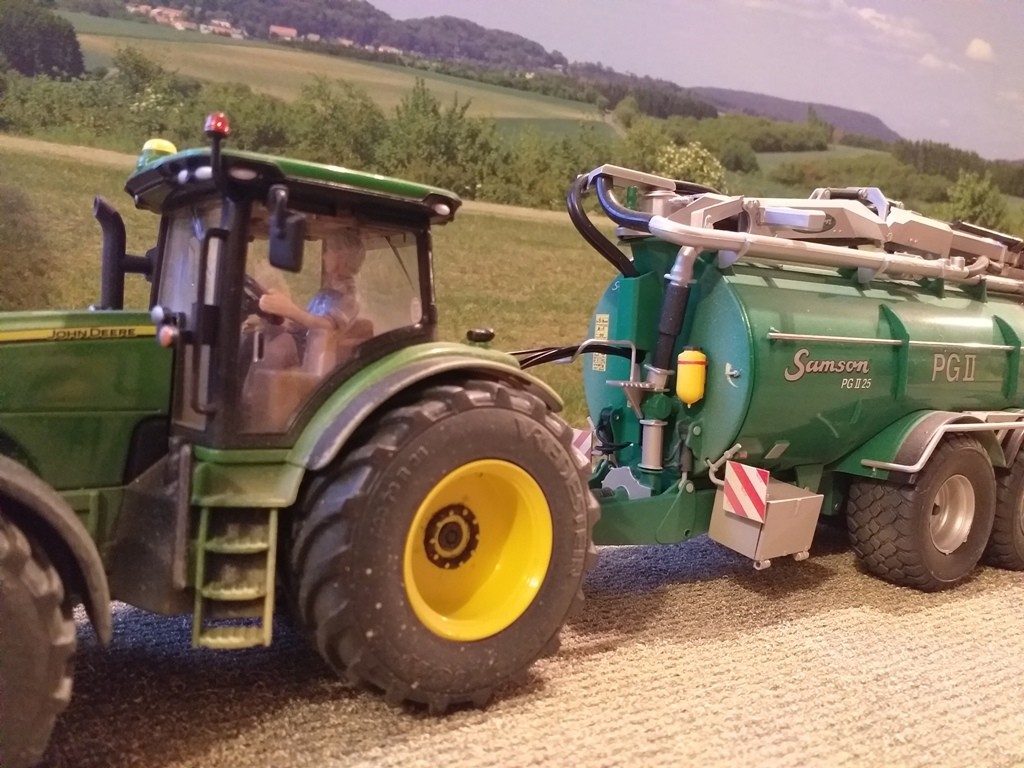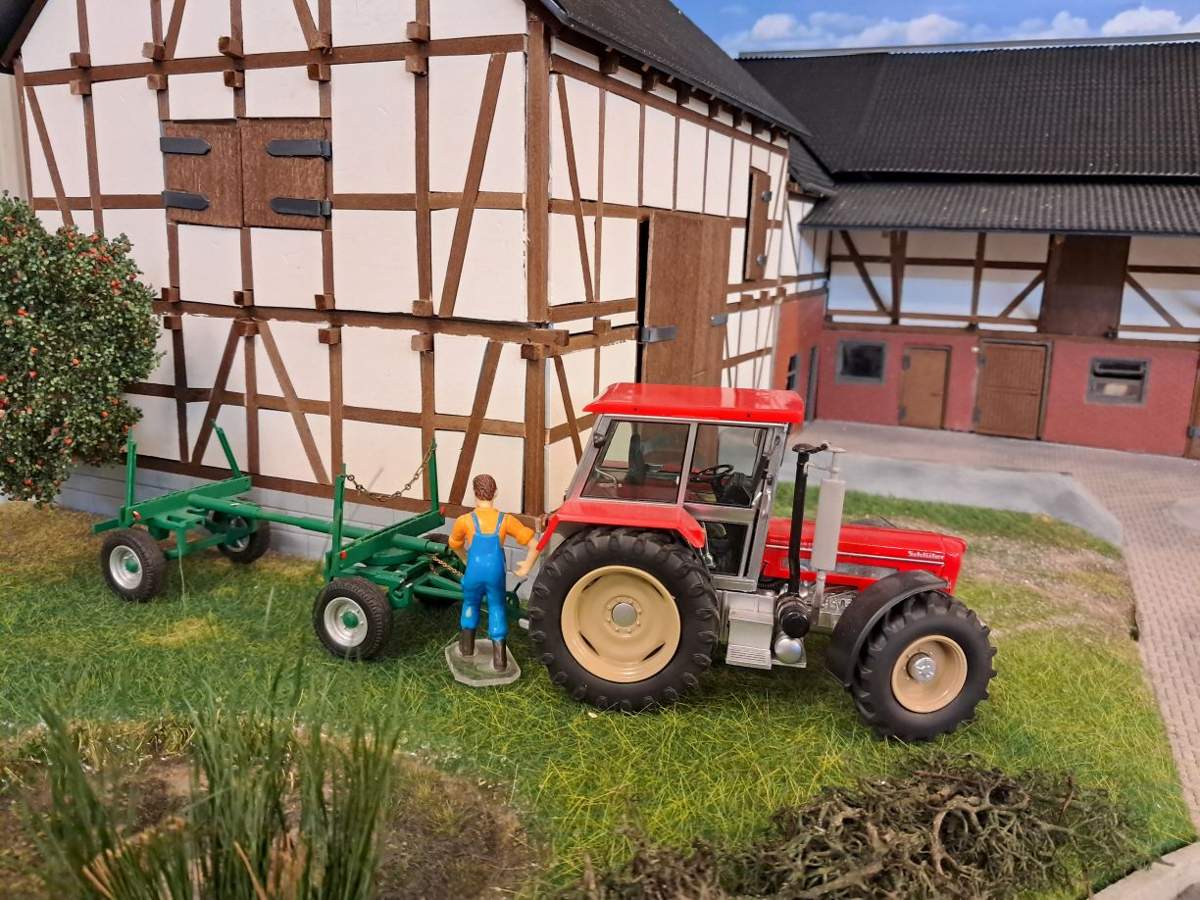 Jupp hat sich heute vorgenommen, Dünger zu streuen. Den Dünger hatte er schon neulich gekauft und ihn samt Anhänger, auf dem er ihn geholt hatte, schon mal im Unterstand an der Wiese abgestellt.