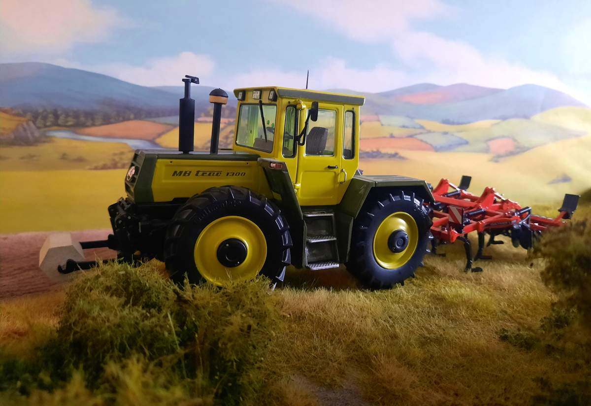 Das Duo mit dem 1600er wurde durch das aktuelle Kalenderblatt des MB trac-Kalenders vom Schwungrad Verlag angeregt. Zu sehen ist dort ein MB trac 1600, allerdings in Olivgrün und der angehängte Grubber ist ein Amazone Cenius 3001. Aber so "verbissen" sehe ich das ganze jeweils nicht.