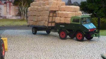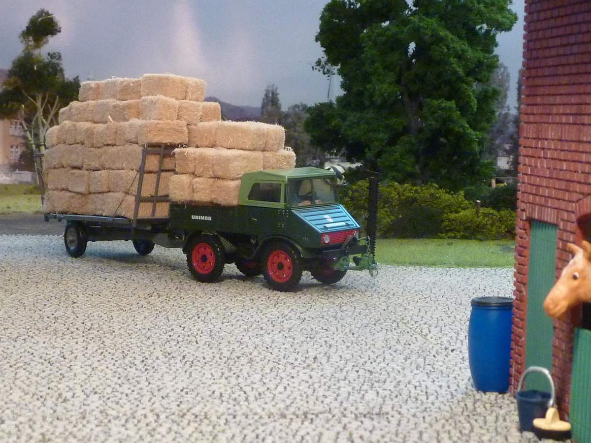Schönes Unimog Gespann hast du da zusammgestellt! Magst du verraten wie Du die tollen Heuballen gemacht hast?;)