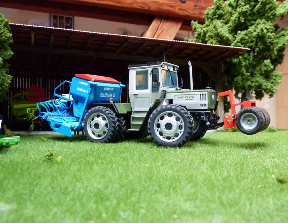 Heute gibt es nach langer Zeit mal wieder neue Bilder für euch! Matthias und ich haben letzte Woche unsere MB Trac 1000 Sondermodelle bekommen und haben mal ein paar Bilder auf dem Diorama mit Sähmaschine und Reifenpacker gemacht, passt ganz gut zusammen wie ich finde!