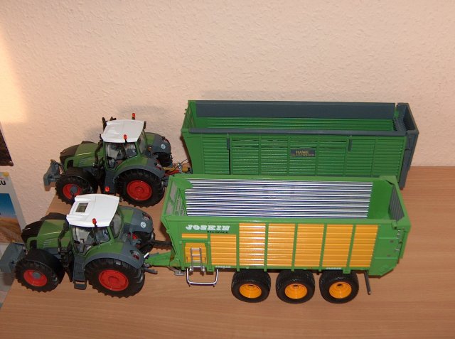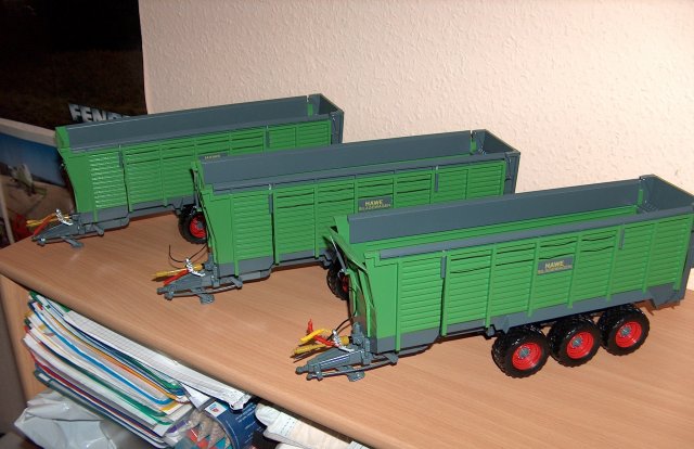 Heute gab es verstärkung in der Futterernte. Es kammen heute 3 nagel neue Hawe Häckslewagen für das LU FENDT die mir der Stefan (AeAe) gebaut hat. Die Wagen sind einfach nur top was andres kann ich nicht dazu sagen. Eine genau vorstellung gibt es mal wenn ich zeit habe.
