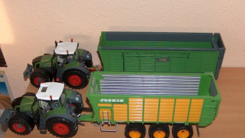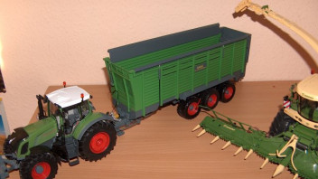 Schön das er euch alle sogut gefällt. Ich habe noch ein paar Bilder gemacht mal mit Häcksler und einen größen vergleich habe ich auch noch gemacht. Kurze erklärung dazu. Die Wagen haben einen Überblasschutz link und recht die kann man Hydraulisch raus fahren. So dann haben sie noch zwei Dosier walzen drin.