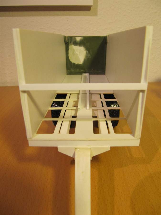 Lackiert wird er Hellgrün, und die Bordwanderhöhungen wohl Silber wie der Aufbau selbst auch.